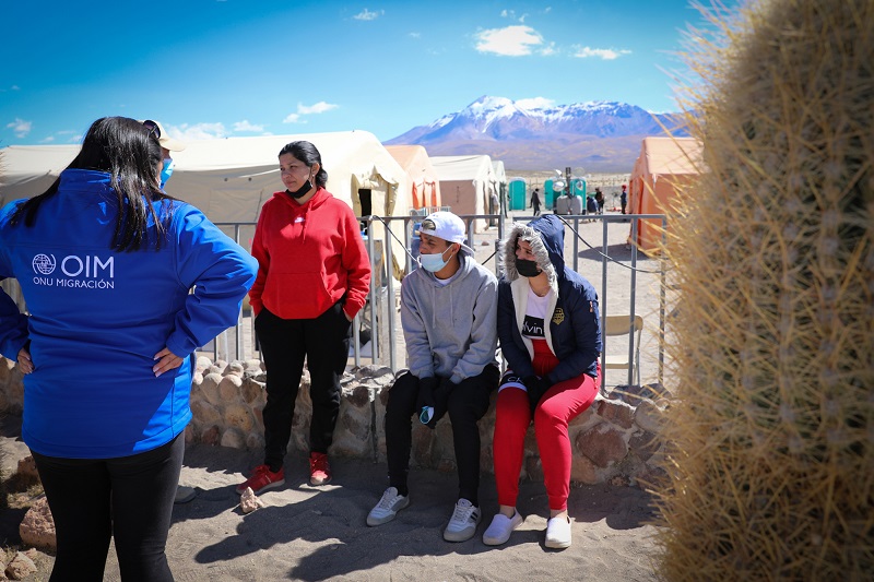 El personal de la OIM evaluando las necesidades humanitarias de migrantes que acaban de llegar a Colchane (Chile) / OIM/Gema Cortés