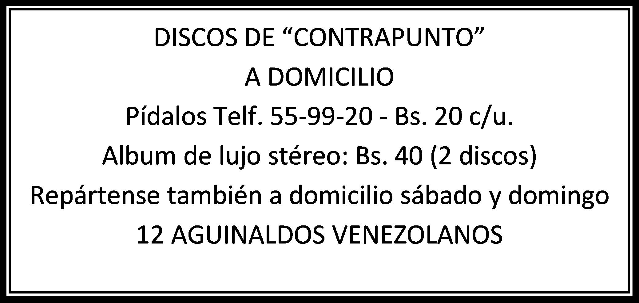 Era el tercer disco de Contrapunto —Aguinaldos— fechado erróneamente en 1965. La fecha de lanzamiento debió haber sido noviembre de 1964, dada la fecha de publicación del aviso.